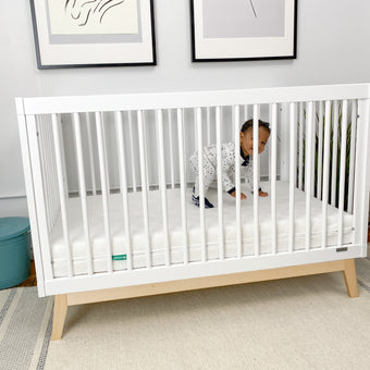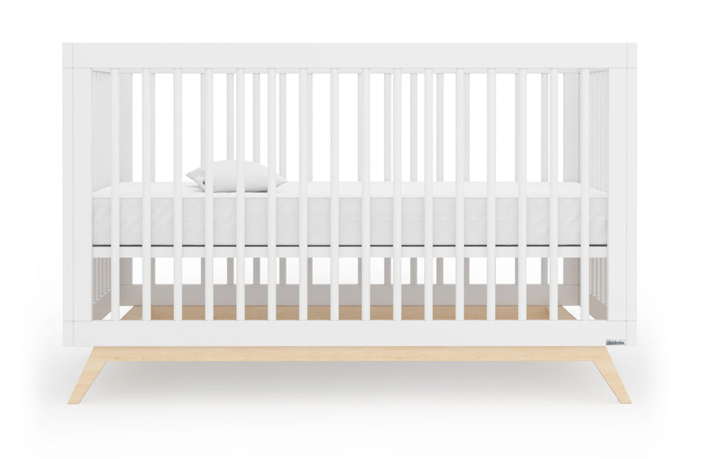 The perfect pair lets you save when you add a Newton crib mattress and this 3-in-1 convertible crib made by dadada in Italy. This crib adds a touch of mid-century style to a classic open design with unique inclined legs tucked under the sturdy beechwood frame. Add a toddler rail for easy conversion and years of longevity. (Toddler rail sold and ships separately)